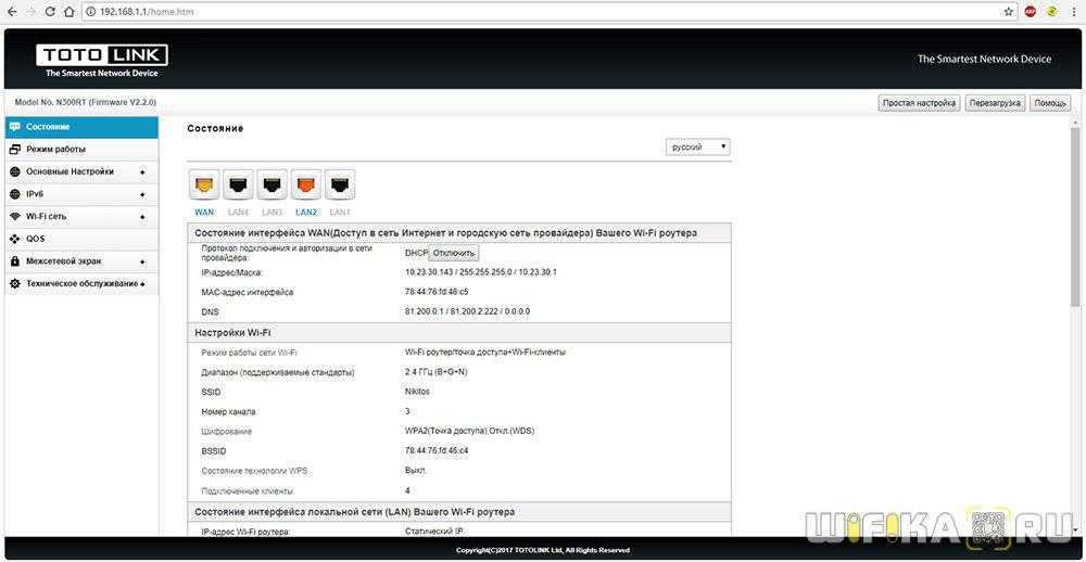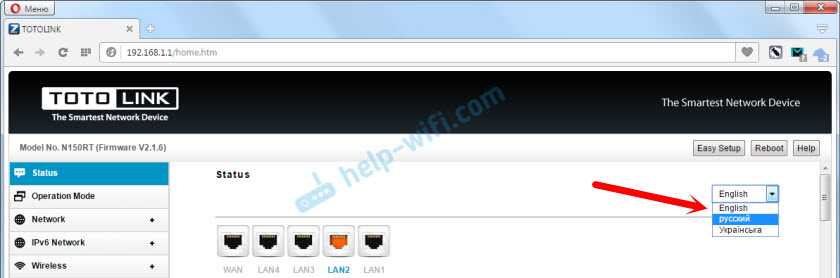 Теперь панель управления на понятном языке, можно настраивать роутер.