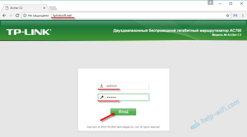 Как зайти на tplinkwifi.net и ввести логин и пароль admin?