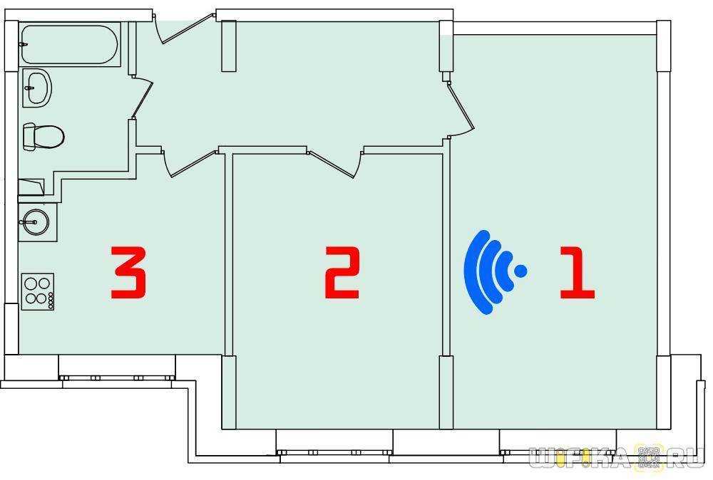 - Зеленый — оптимальное место расположения для передачи wifi по помещению