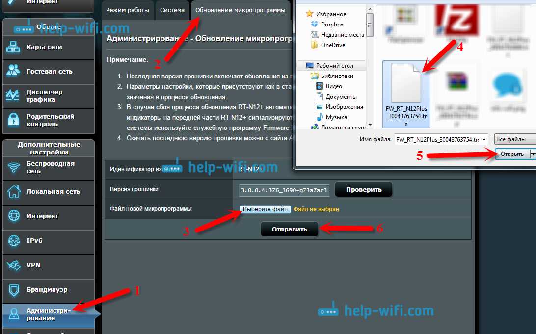 , и выберите файл прошивки на компьютере. Для запуска обновления, нажмите на кнопку Отправить