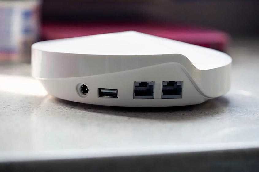 Кроме сетевых разъёмов на тыльной стороне маршрутизатора есть гнездо для подключения питания, а также кнопка Reset для отката настроек к заводским. USB-портов Mesh-система не имеет. По этой причине подключить к сети жёсткий диск или проводной МФУ, принтер, сканер и прочую технику не получится. Впрочем, для многих пользователей данный факт наверняка не станет критичным. Практически вся современная техника подключается беспроводным способом.