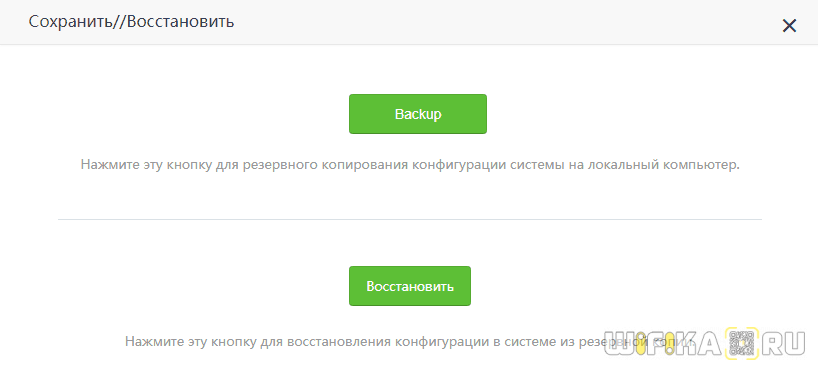 И нажимаем на кнопку «Backup». В дальнейшем, чтобы восстановить свою конфигурацию из резервной копии, будем нажимать здесь кнопку «Восстановить».