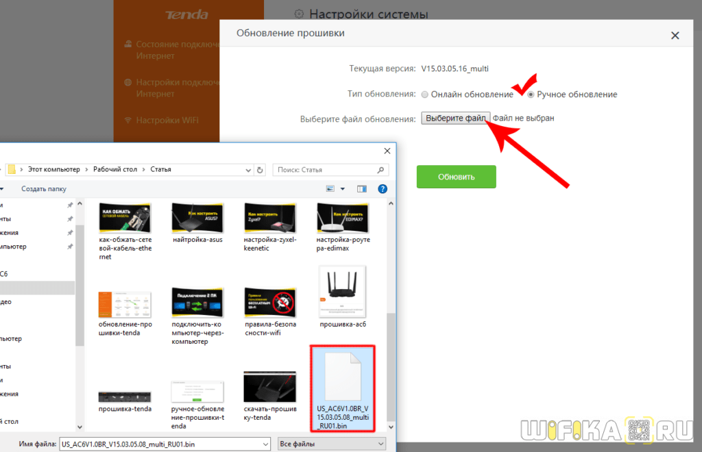 Поэтому лучше полностью контролировать процесс — ставим флажок на «Ручное обновление» и выбираем с компьютера тот самый недавно распакованный файл — он имеет расширение .BIN